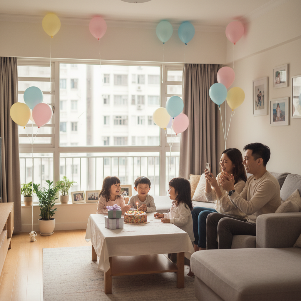 適合人數少、想輕鬆慶祝嘅家庭。家長可以同小朋友一齊布置氣球、簡單Backdrop,甚至邀請小朋友幫手準備,增加參與感。好處係成本低、時間彈性高;缺點係空間有限,同埋清潔要自己負責。
